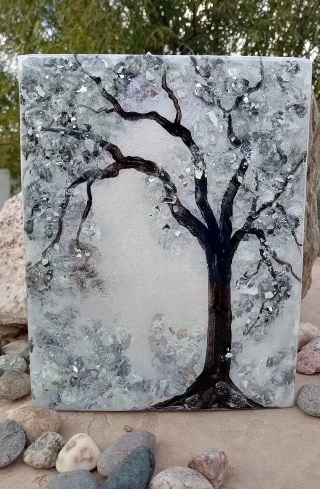 Join us for a night of laughter and fun while we make mixed media frosted trees. We will have the canvas, paint, crushed glass and resin ready for you to use when you get here. Just wear old clothes that because this can get messy.
